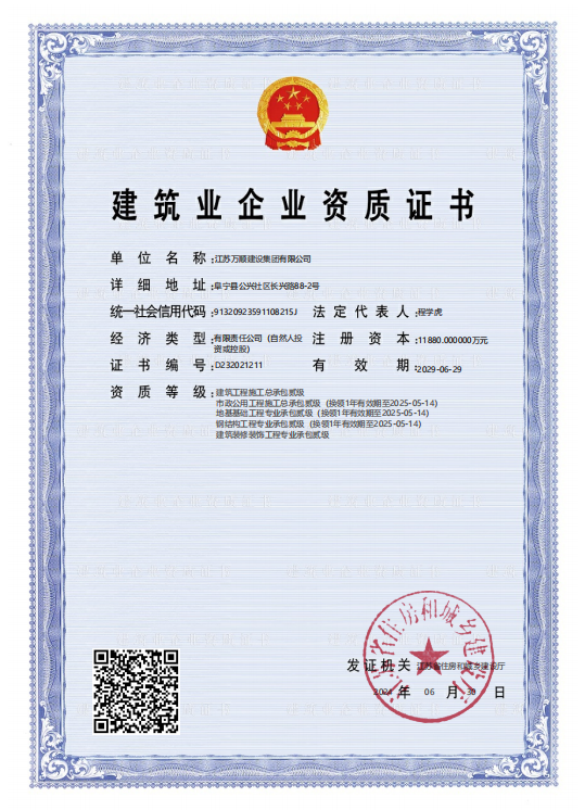 • 萬順集團晉升為江蘇省二級資質建筑單位2015-02-28